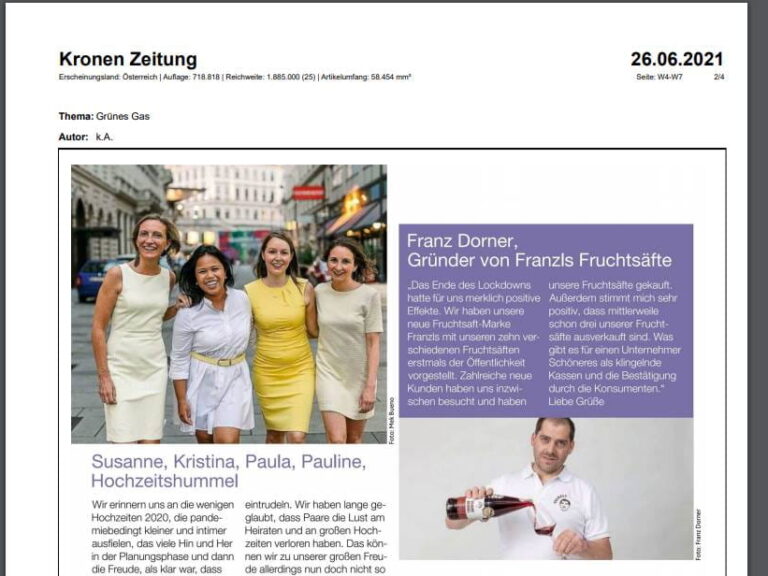 Das Ende des Lockdowns hatte für uns merklich positive Effekte. Wir haben unsere neue Fruchtsaft-Marke Franzls mit unseren zehn verschiedenen…
