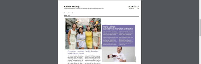 Das Ende des Lockdowns hatte für uns merklich positive Effekte. Wir haben unsere neue Fruchtsaft-Marke Franzls mit unseren zehn verschiedenen Fruchtsäften erstmals der Öffentlichkeit vorgestellt. Zahlreiche neue Kunden haben uns inzwischen besucht und haben unsere Fruchtsäfte gekauft. Außerdem stimmt mich sehr positiv, dass mittlerweile schon drei unserer Fruchtsäfte ausverkauft sind. Was gibt es für einen…